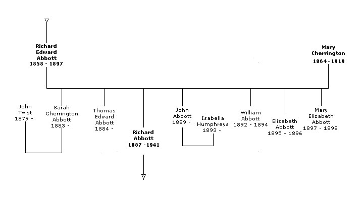 This is a family tree diagram showing one generation of the Abbott family, from Edward Abbott, around 1810, through the nineteenth century to Richard Abbott in 1897.